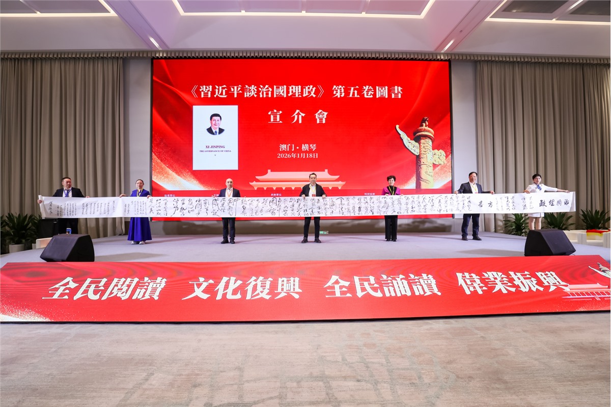 【本報訊】2026年1月18日,澳門橫琴星享橫琴天沐酒店內賓朋雲集、氛圍莊重熱烈,《習近平談治國理政》第五卷澳門橫琴宣介會盛大召開。本次活動以「全民學習治國偉力,共築灣區時代華章」為核心主旨,緊密圍繞《習近平談治國理政》第四卷、第五卷的核心要義,聚焦習近平新時代中國特色社會主義思想的最新理論成果,搭建起粵港澳大灣區思想交流、共識凝聚的重要平臺,為琴澳深度融合與國家高質量發展注入強勁思想動力。