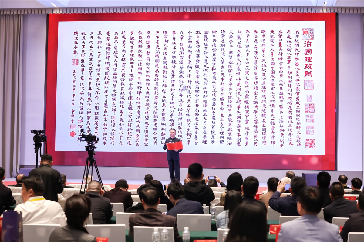 啟動儀式後,四輪莊重的贈書禮依次開展。何君堯、周瑞清、程瑜、白國慶等頒授嘉賓先後為近60家企業、機構及海內外學生代表鄭重頒授專著。其中中能低空經濟(深圳)有限公司董事長李瑞、化州市裕泰生物科技公司農夫子化橘紅董事長謝立明、東阿縣禦寶葡萄酒有限公司董事長戴藝芬、廣州美亞科技發展有限公司董事長張雅娜、慧源同創科技集團有限公司董事長林前進、山東齊澤生物科技有限公司董事長吳以琳、全域數據資訊安全發展研究院院長賴一陽、福建大芹陸宜酒業有限公司尹可為總經理、明生能源科技公司董事長黃明生、長歲樹水科技有限公司董事長廖友溢、上海太古本草中醫藥集團有限公司董事長高安鳳、相信這面旗文化傳媒公司董事長薛漢卿、中華籽粒莧研究院院長羅小雨、中華老字型大小國際認證中心董事長邱自琴、產城實業投資控股集團有限公司總經理李超輝分別代表所在機構接過著作。來自澳門學生代表蒯佳靜、巴拿馬學生代表陳偉傑、北京學生代表路景勝、南京學生代表沈修平、加拿大學生代表周清泉、香港學生代表程燁鑫表示,將認真研讀著作,帶著書中的思想智慧,為海外與內地的深度交流貢獻青年力量。