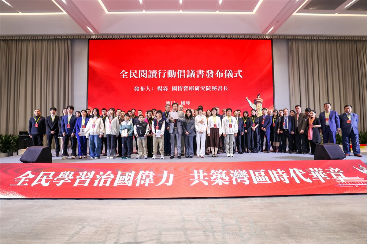 簽約儀式後,「全民閱讀行動倡議書」發佈儀式如期舉行。國情智庫研究院秘書長楊霖登臺宣讀倡議書,號召全社會積極參與閱讀行動,讓讀書成為生活習慣、讓思想滋養精神世界。宣讀完畢後,主持人帶領全場嘉賓共同高呼「開展閱讀行動,全民人人有責」,三遍嘹亮口號響徹會場,傳遞出灣區民眾踐行全民閱讀、傳承優秀文化的堅定決心,將現場氣氛推向高潮。